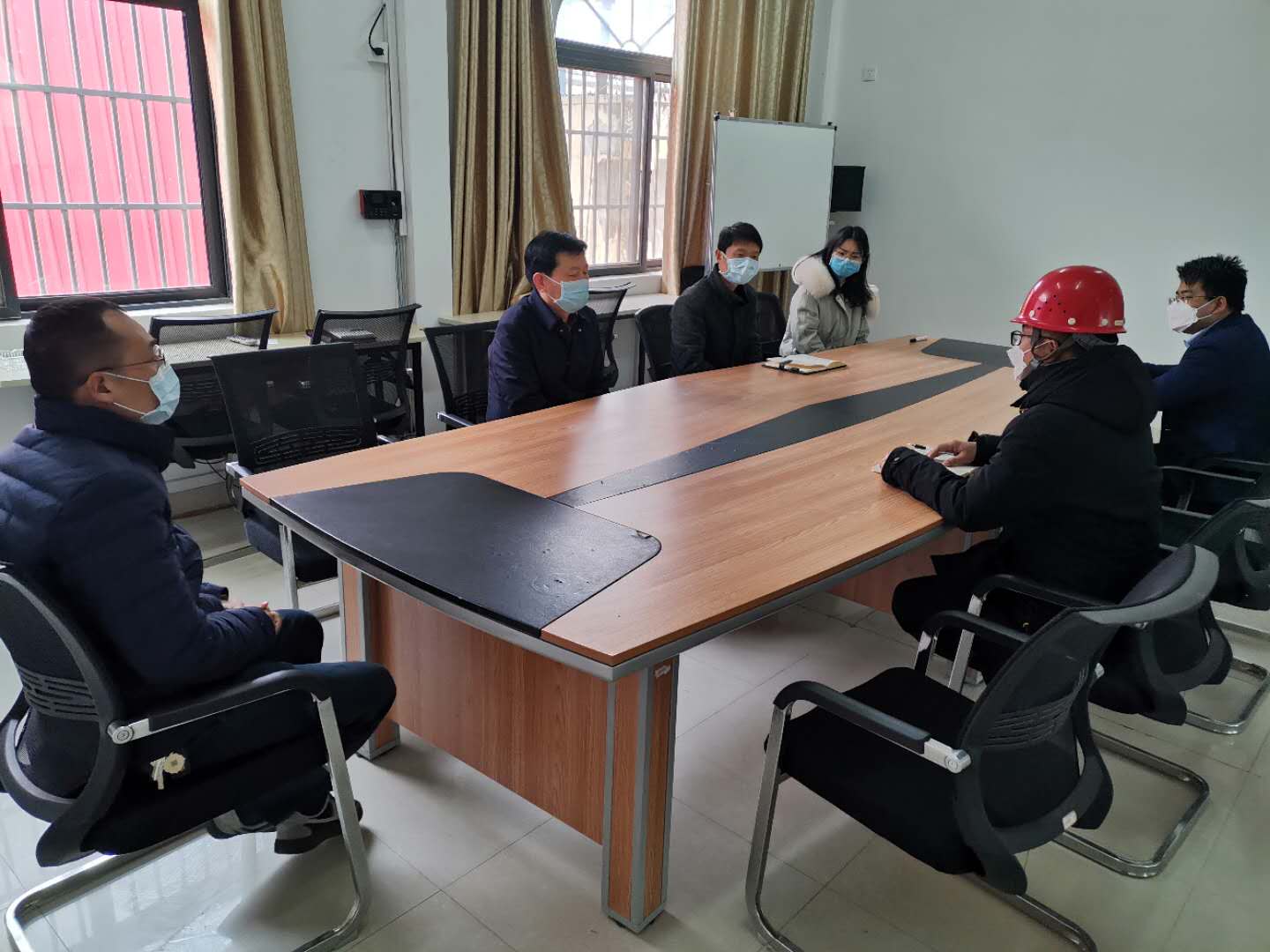 隨后,一行人在公司會(huì)議室聽(tīng)取了李總有關(guān)復(fù)工防疫工作落實(shí)情況的匯報(bào)。趙主任指出,企業(yè)應(yīng)發(fā)揮防疫主體