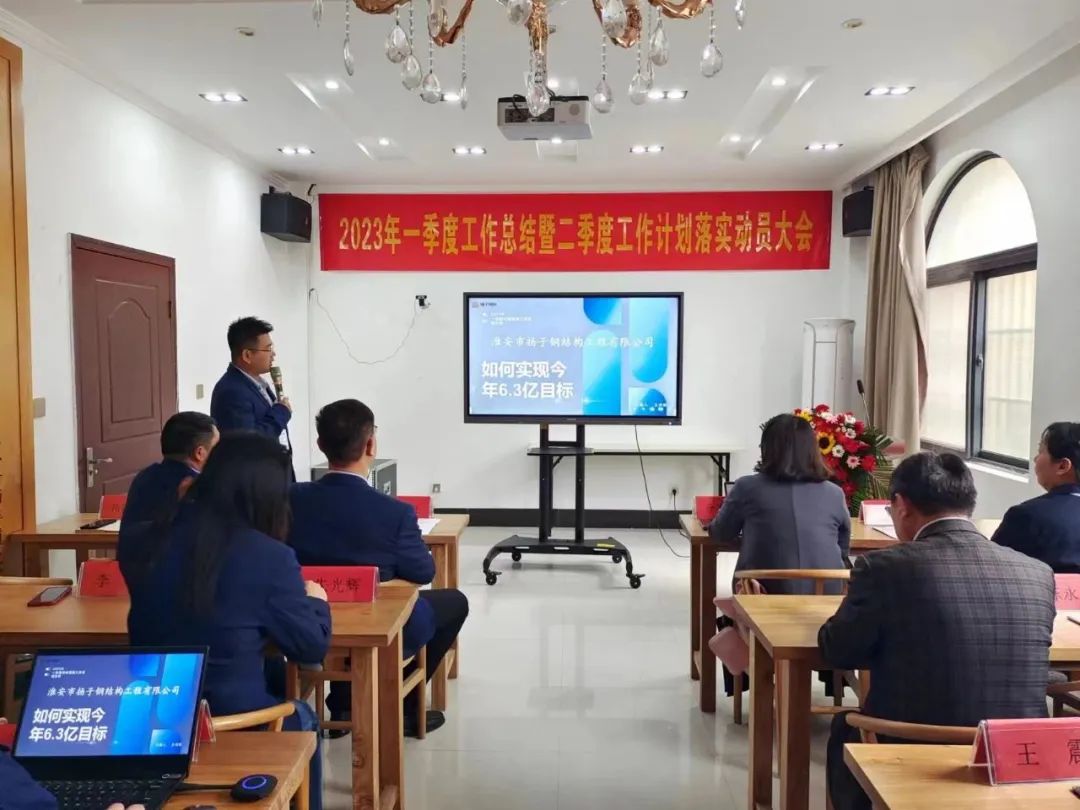 4月22日,淮安市揚(yáng)子鋼結(jié)構(gòu)工程有限公司(以下簡(jiǎn)稱“揚(yáng)子鋼構(gòu)”)2023年第一季度工作總結(jié)暨第二季度工作計(jì)劃落實(shí)動(dòng)員大會(huì)順利召開。