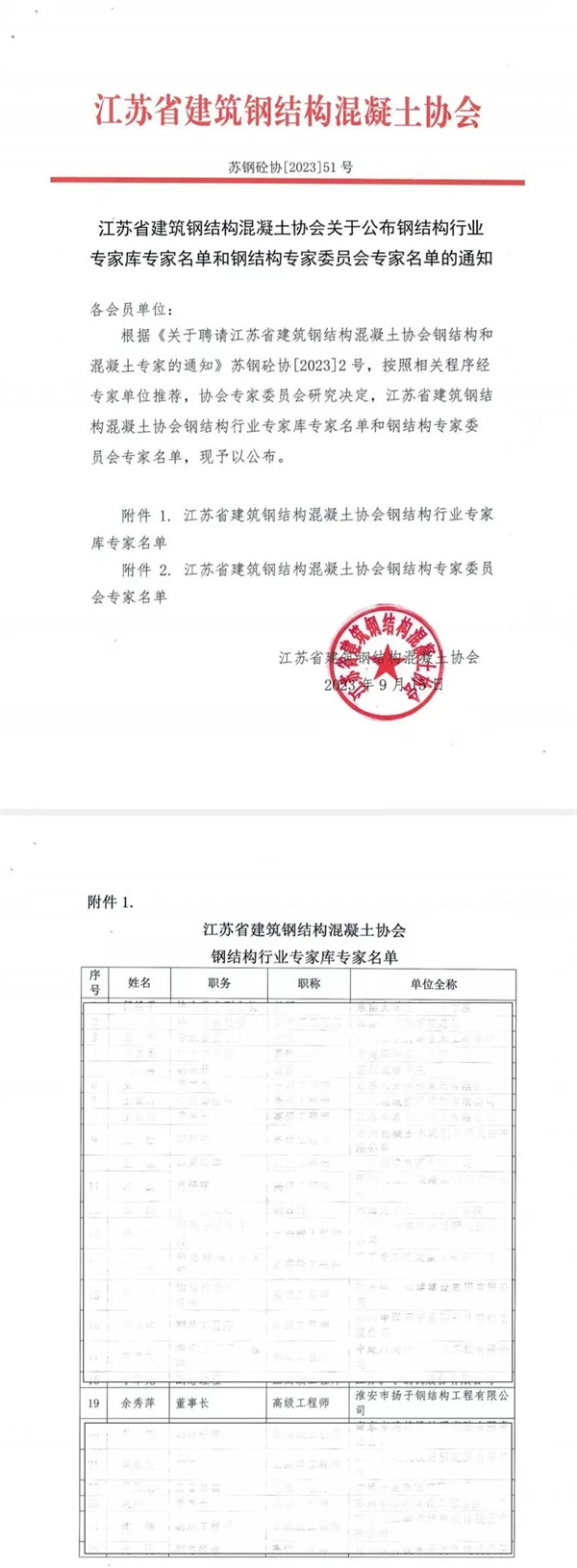 2023年江蘇省建筑鋼結(jié)構(gòu)混凝土協(xié)會(huì)為引領(lǐng)行業(yè)發(fā)展,給政府、會(huì)員提供更優(yōu)質(zhì)的服務(wù),根據(jù)蘇鋼砼協(xié)(2023)2號(hào)文件精神,決定在院校、科研設(shè)計(jì)院所、企業(yè)等領(lǐng)域聘請(qǐng)鋼結(jié)構(gòu)和混凝土相關(guān)專業(yè)的專家。文件要求受聘的鋼結(jié)構(gòu)混凝土專家不僅具備良好的職業(yè)道德和敬業(yè)精神,有意愿、有能力履行專家職責(zé)的基本條件,且具備正高級(jí)職稱,從事鋼結(jié)構(gòu)或混凝土領(lǐng)域相關(guān)工作的專業(yè)條件。 淮安市揚(yáng)子鋼結(jié)構(gòu)工程有限公司(以下簡(jiǎn)稱“揚(yáng)子鋼構(gòu)”)董事長(zhǎng)余秀萍成功入選,被江蘇省建筑鋼結(jié)構(gòu)混凝土協(xié)會(huì)聘請(qǐng)為江蘇省鋼結(jié)構(gòu)行業(yè)專家?guī)鞂<摇?/span>