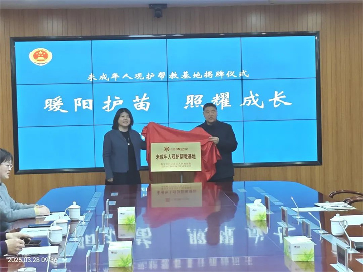 會(huì)上,清江浦區(qū)人民檢察院臧雪青檢察長(zhǎng)與江蘇揚(yáng)子鋼結(jié)構(gòu)工程有限公司余秀萍董事長(zhǎng)、清江浦區(qū)絲語未成年人司法社會(huì)服務(wù)中心共同簽署了《未成年人觀護(hù)幫教基地合作協(xié)議》,并舉行了未成年人觀護(hù)幫教基地揭牌儀式。